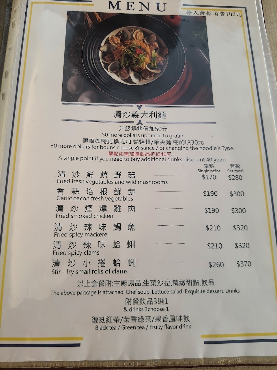 蠻家常的一間店,口味上比較偏台式義麵,價格實在,湯品很好喝,沙拉有水果陪襯,看得出用心??