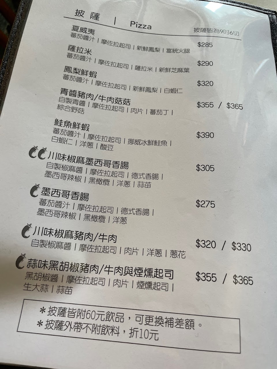 早前曾在瑞豐夜市後方,南屏路旁巷子內吃過,以為這是分店,沒想到南屏店已經收了,轉移陣地至開原街。新址在巷子內,就是一般住家的樓下,僅有一樓,座位比以前少了些,但風格類似,那個有年代感,鐘擺時鐘還是在。口味一樣不錯,椒麻的披薩是特色餐點,一片吃完,麻的尾勁就會上來,但是又不會讓你辣到受不了,可以吃辣的人不要錯過。附近頗難停車,願意走一下的,可以看看同盟路上停車格,不然就是收費停車場。新址最大不便,是沒有提供洗手間,難以久坐,跟我一樣小膀胱的人要留意