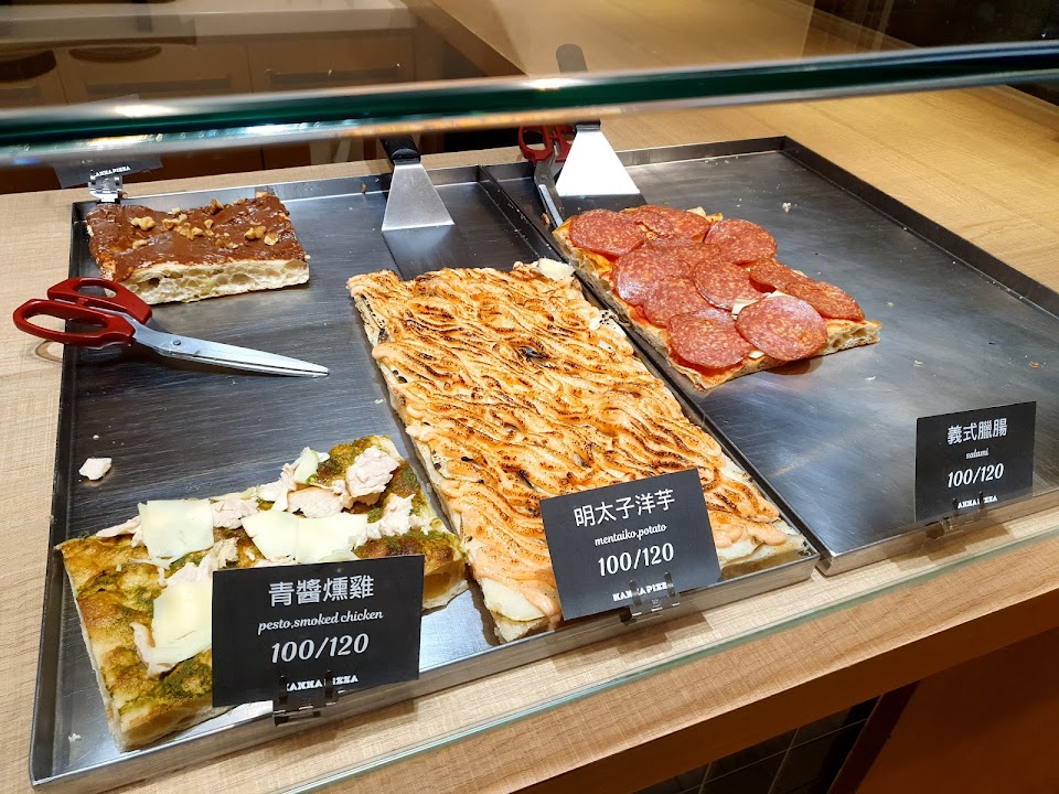 有嚼勁的餅皮,上面的餡料非常的多,長方形的Pizza,口味選擇性高,值得推薦