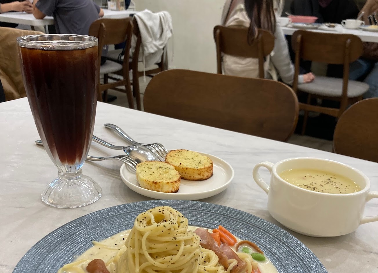 缺點是套餐的濃湯粉味重勾芡過多、麵包過油有耗味、打卡送的奶酪也過甜口感也不好,但整體算是便宜還算不錯吃~