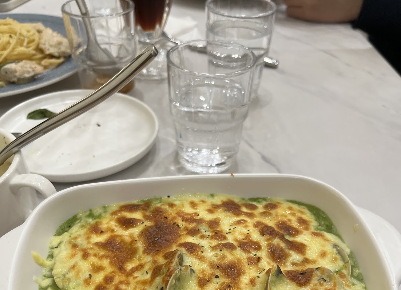 價格來說還算可以接受,玉米濃湯的味道普通,紅茶也算能喝,這次點焗烤青醬蛤蜊,蛤蜊滿新鮮的,而且算大顆,青醬的味道個人不太喜歡,有點味道太雜。