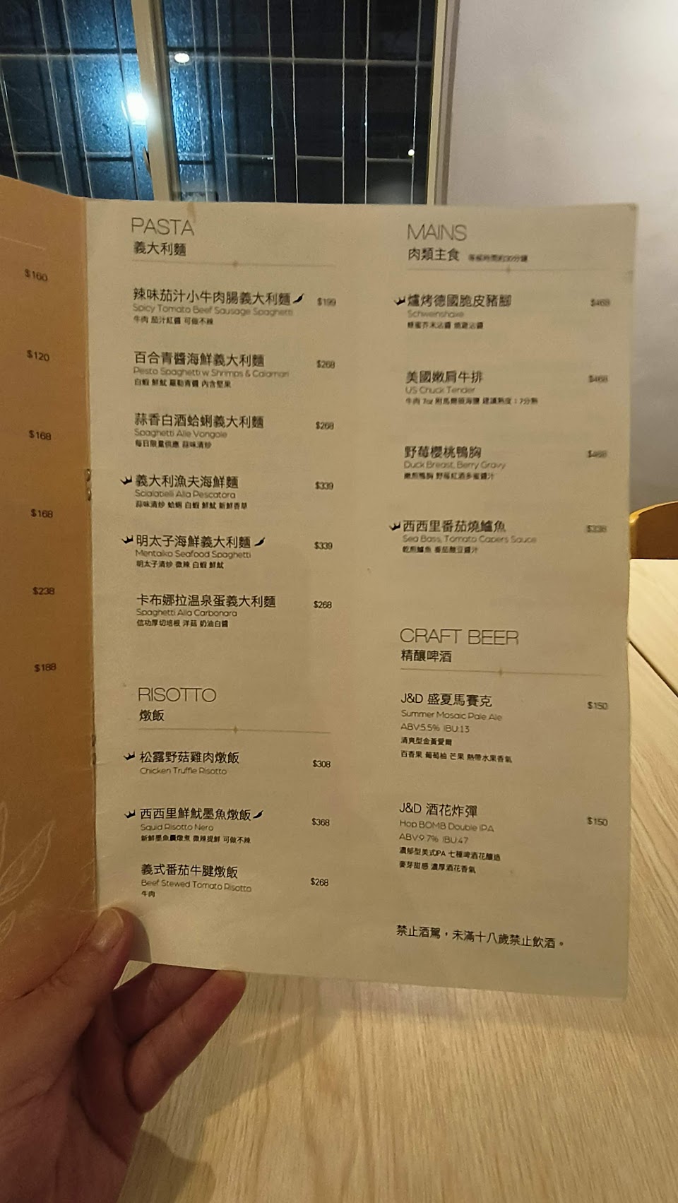 店內主要有義大利麵、燉飯、肉食、調酒、甜點供大家選擇,每個系列的選擇性也很多,如果不曉得要吃什麼的就點套餐吧!