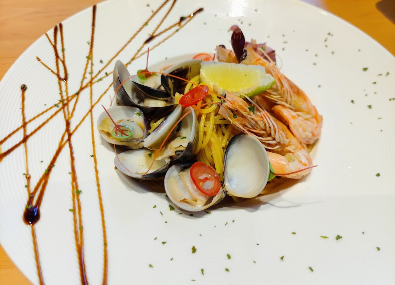 海鮮義大利麵海鮮很多又新鮮,還很貼心的有去蝦殼