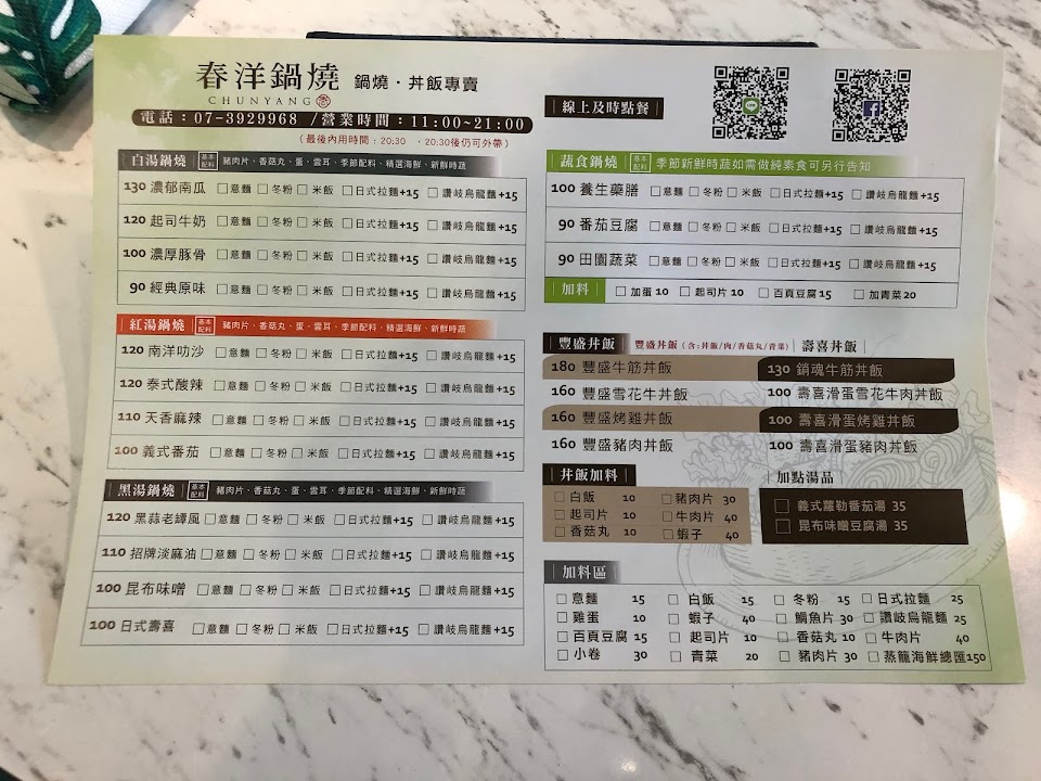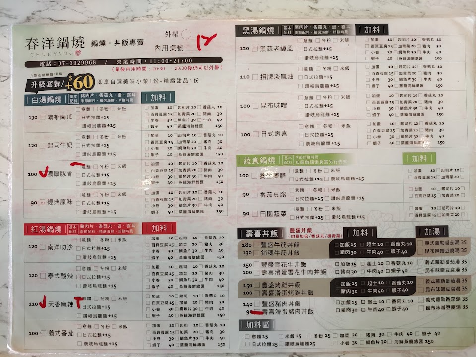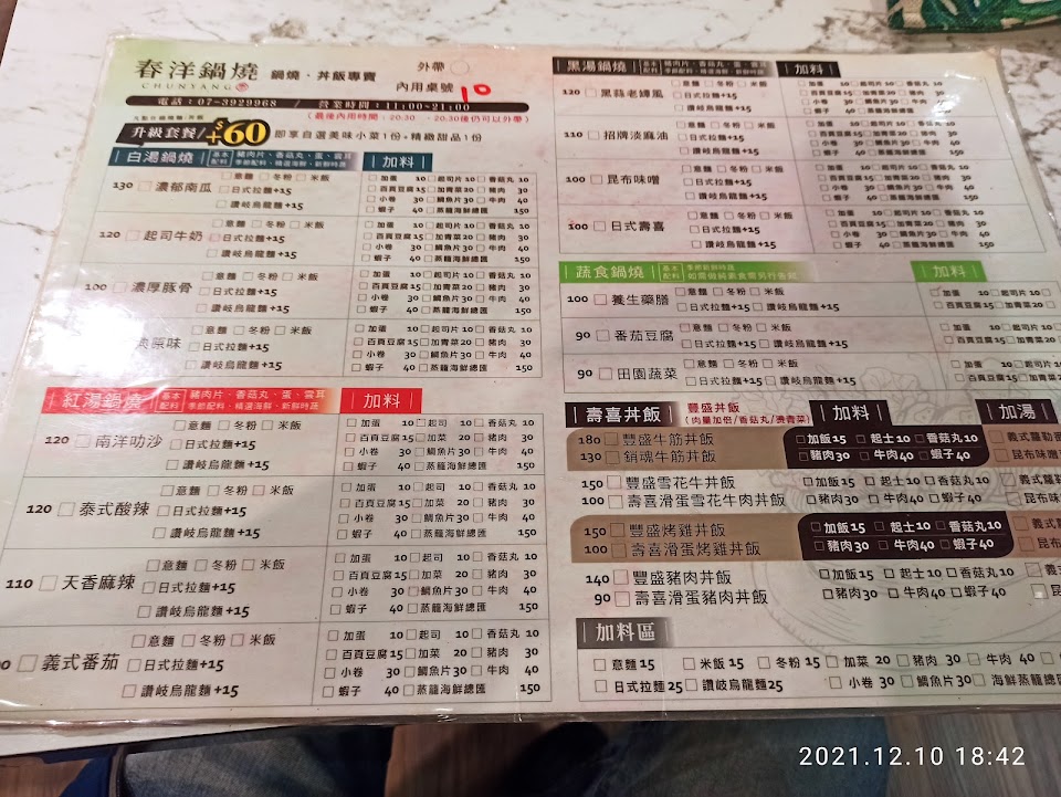 2024最新在地推薦餐廳的菜單_春洋鍋燒 三民區正興店 CHUNYANG的菜單、圖片