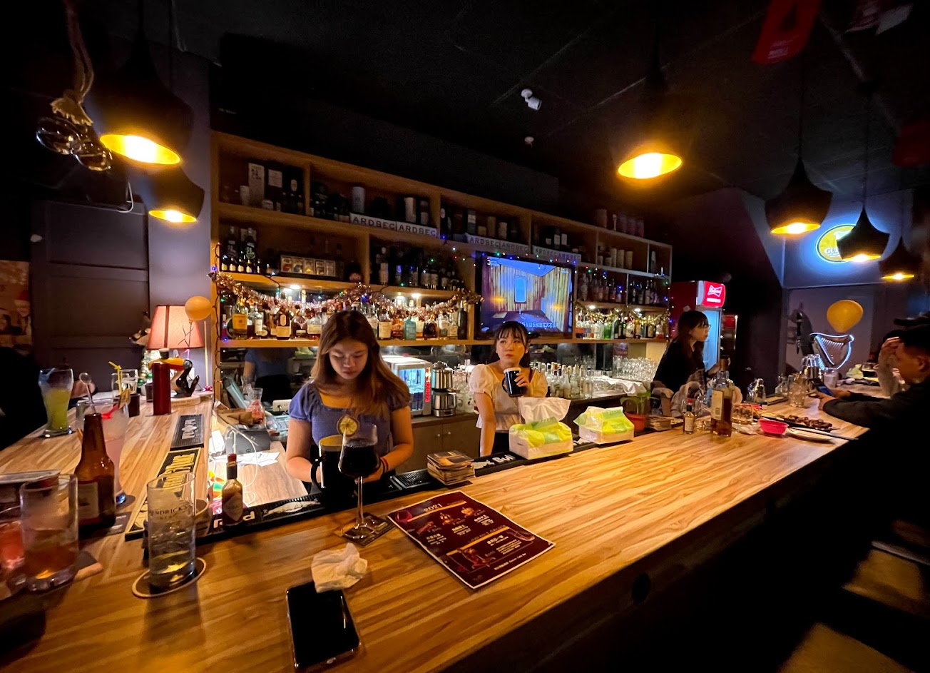店員人很好聊,內有一台飛鏢鳳凰機,店員會跟你聊喝什麼酒,幫你特調,酒還可以