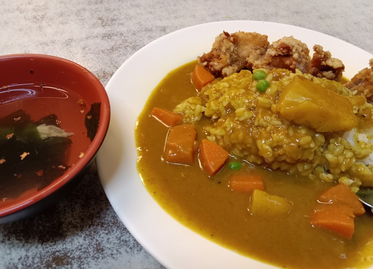 咖哩飯有著好食味道,份量足夠,免費提供湯品,適合小資族