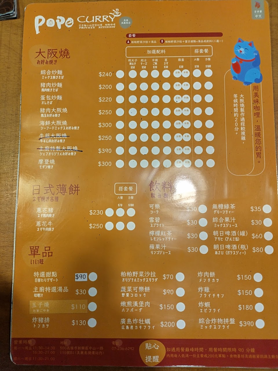 ###當天可能店家太忙了~所以我們下午去的時候只剩下咖哩飯可以點其他像大阪燒那些都沒有了~有機會再來品嚐其他的餐點???