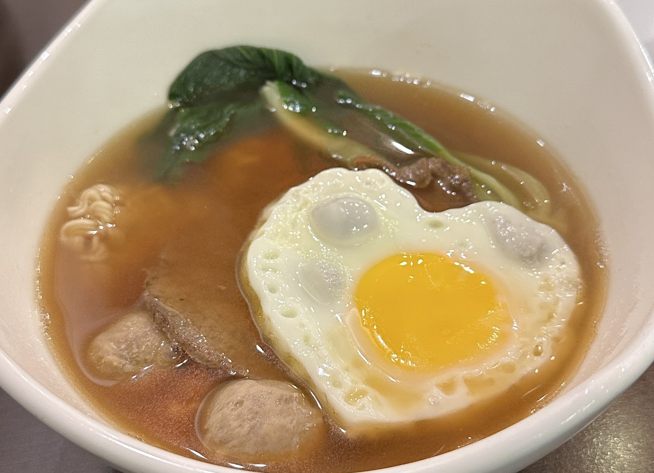 公仔湯麵不會太油,味道蠻好,蛋黃沒有全熟,燒肉很嫩,還不錯