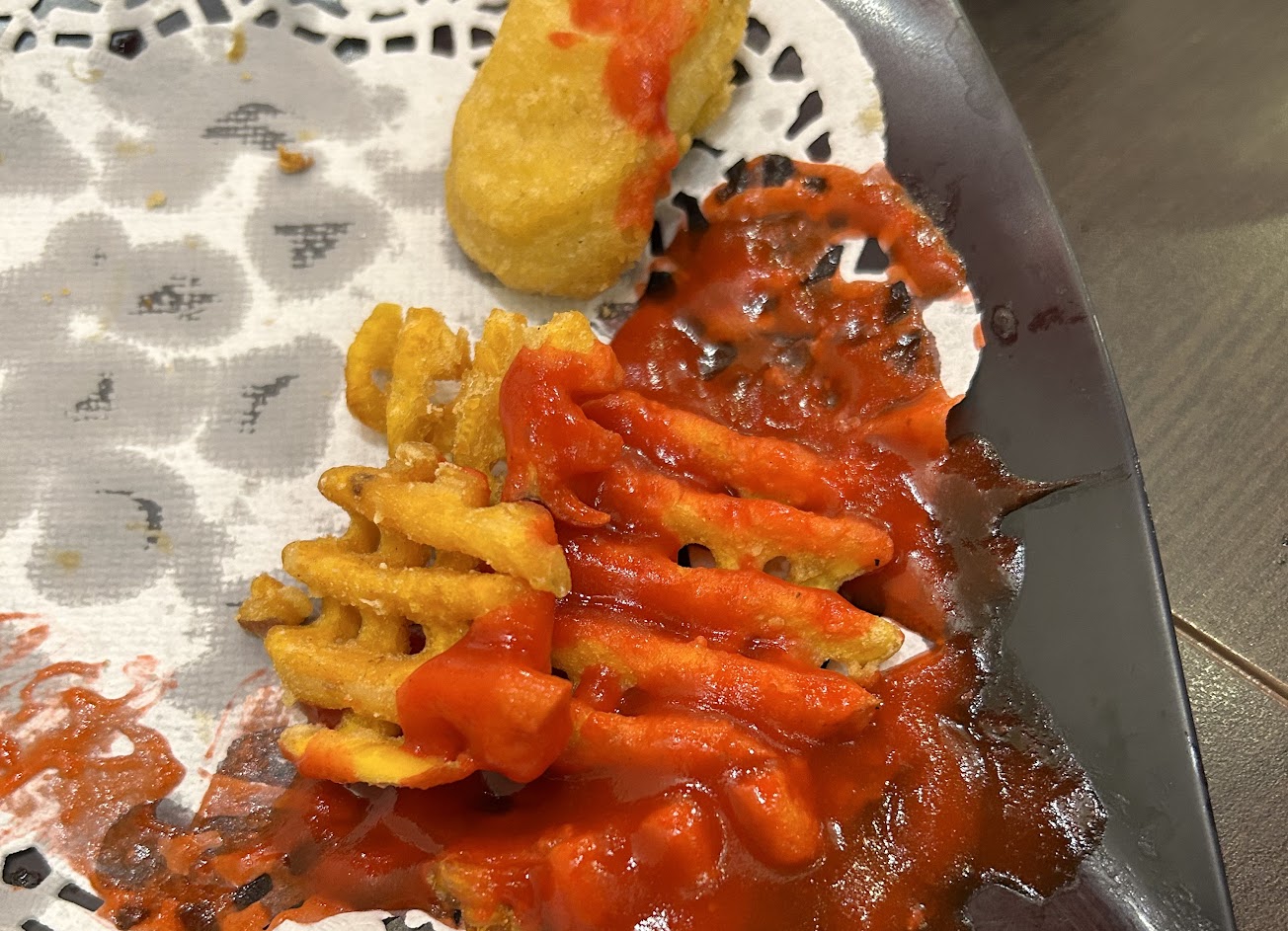 不愧對面就是摳摳 巷口宵✌? 掃碼QR扣點餐方便 番茄醬帶有梅子粉味 (同行友人說這是古早味口味的番茄醬),個人比較建議不要直接倒在拼盤上