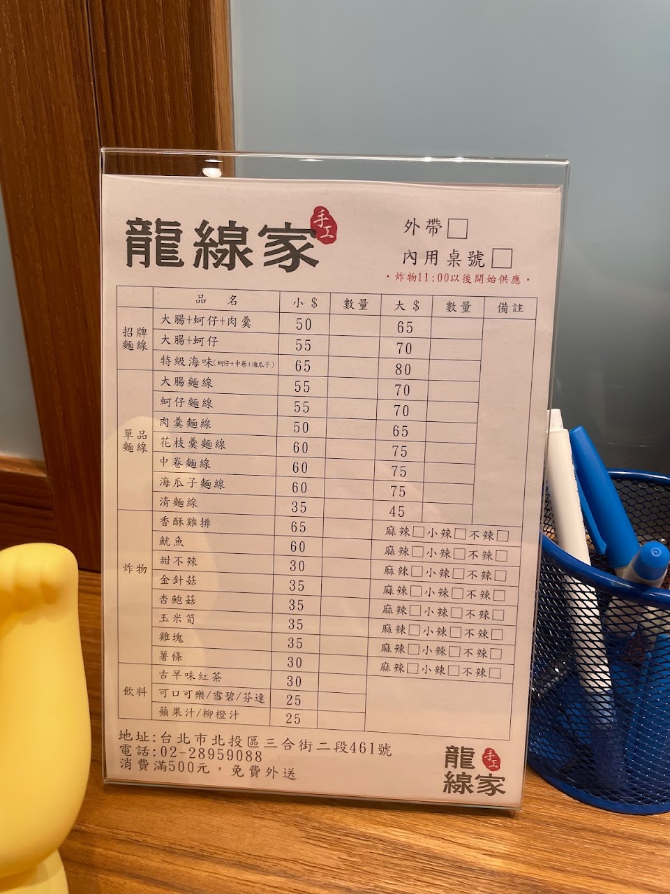2024最新在地推薦餐廳的菜單_龍線家大腸麵線雞排的菜單、圖片