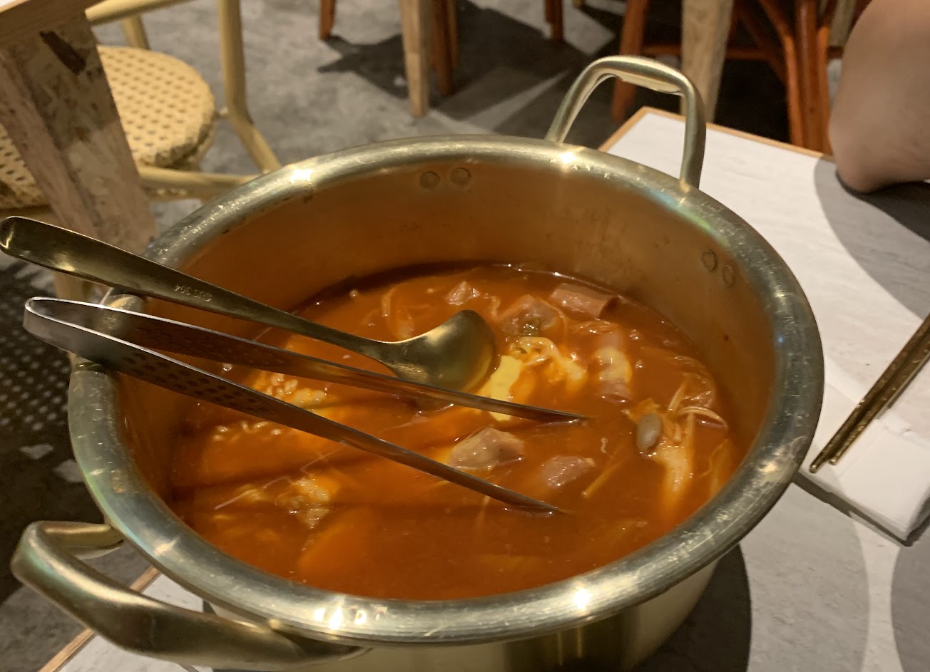 1.部隊過長這樣?我煮的辛拉麵都比這個好吃 2.鍋子跟鍋蓋超級髒 3.煎餅連續出錯兩次 4.到餐廳點完餐等了一小時才出三道菜(現場客人並不多) 5.音樂大聲到無法叫店員,店員全部只顧著擦碗跟杯子 6.海鮮煎餅到底有沒有含泡菜?如果有為何菜單沒有標示?店員也沒有告知!因為我們是要點給小朋友吃的 這跟某飲料店最近的新聞有什麼不一樣?