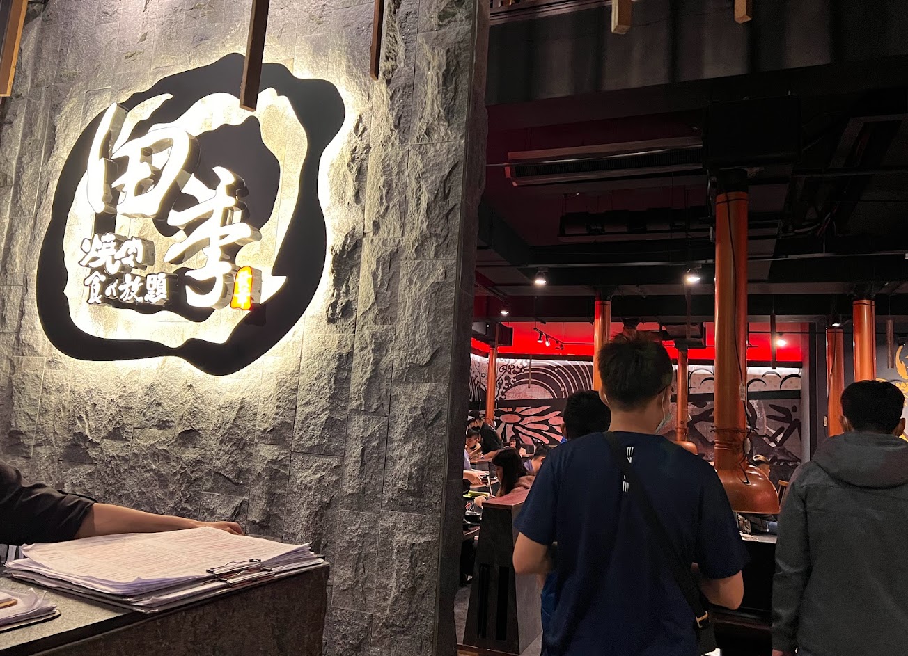 食材送的速度快,不會刻意拖時間,服務人員態度很好,換烤網不用特別請服務人員來換,會主動來幫忙換,烤到一半覺得火太小要求加炭,也是二話不說直接換一爐新的,食用期間都沒看到服務人員態度不耐煩,整個服務周到,室內裝潢也很奇特,第一次在吃到飽店裡看到飛龍,看得出來店家對服務與裝潢很用心,不過烤爐可能因為拿取便利性的關西,烤爐偏小,能烤的範圍有限,如果是四個大男生,一開始急著吃粗飽的,只能先用一旁的小火鍋先煮些肉來吃,整體來說還是很不錯,值得推薦的店家。