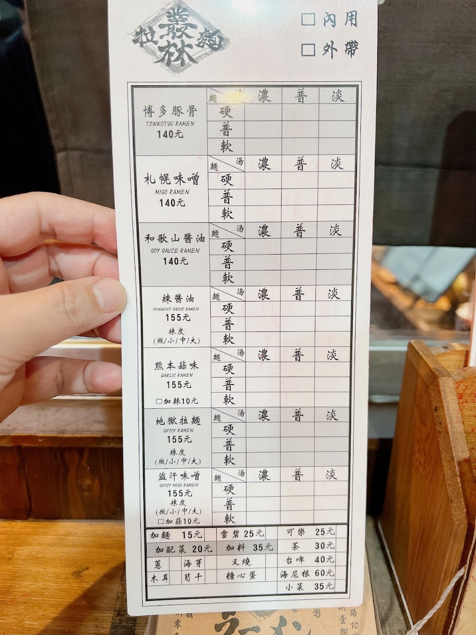 店內座位採吧檯式桌椅,可以跟店員索取冰水?,麵體可選軟硬度