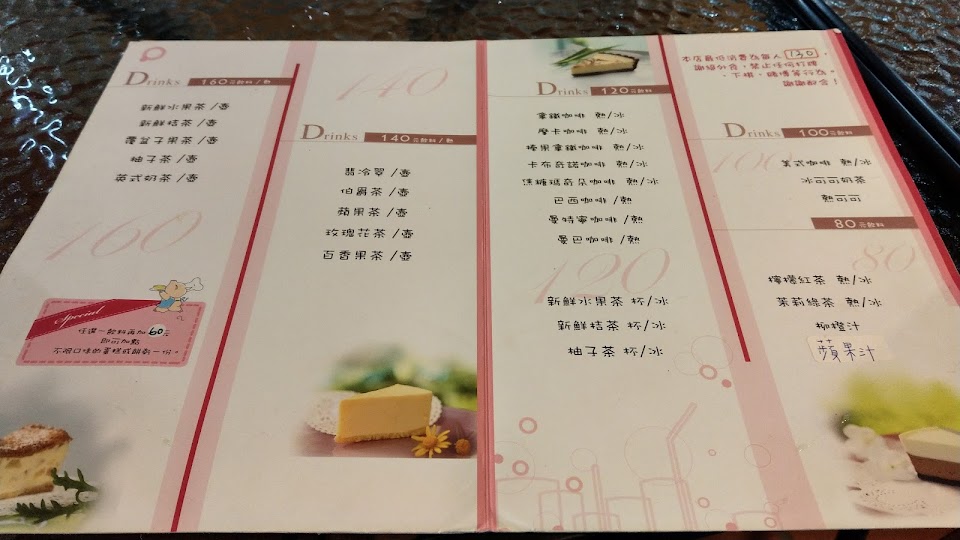 只有蛋糕、麵包、甜點和飲料能吃喝,