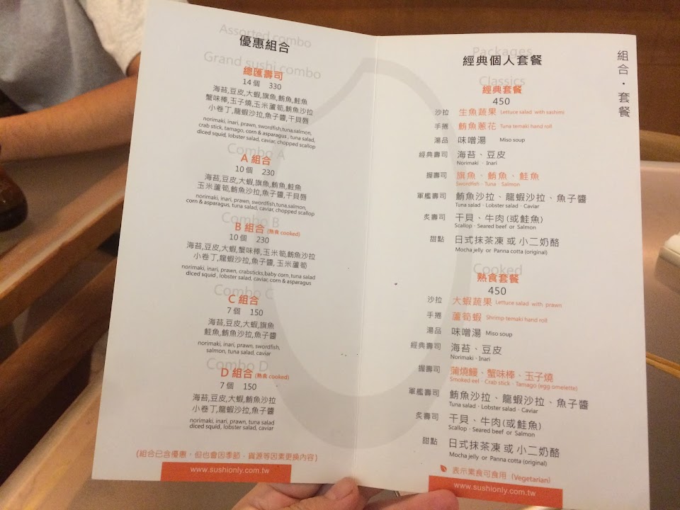 壽司有許多組合可選擇,感覺得到老闆對食材挑選的用心與堅持。
