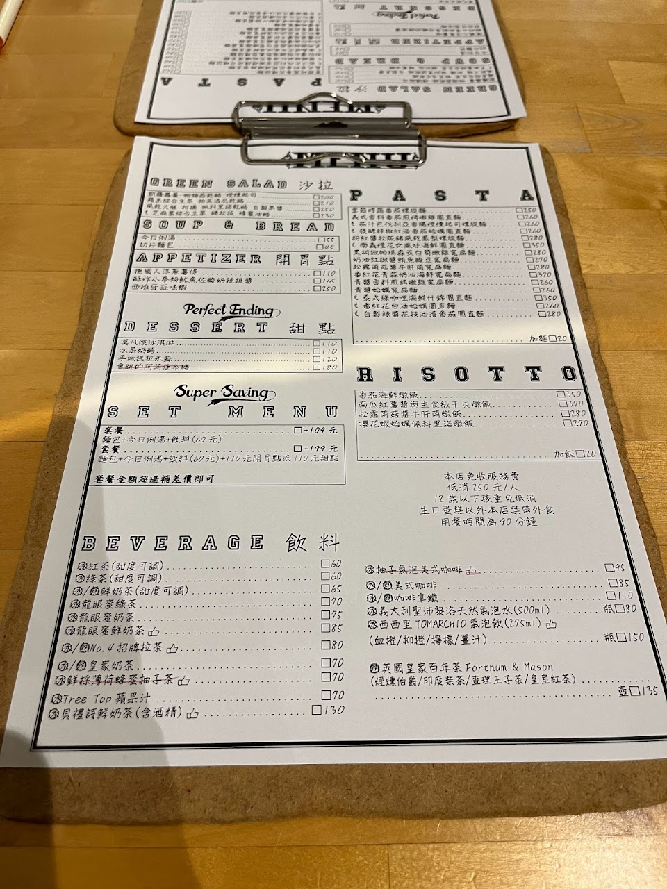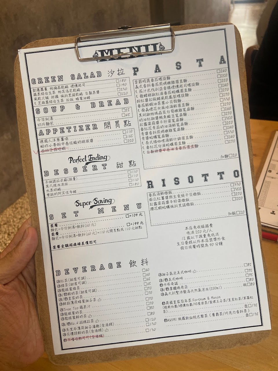 兩份義大利麵、兩杯飲料、兩碗濃湯、一個小點心,竟然要8百多元