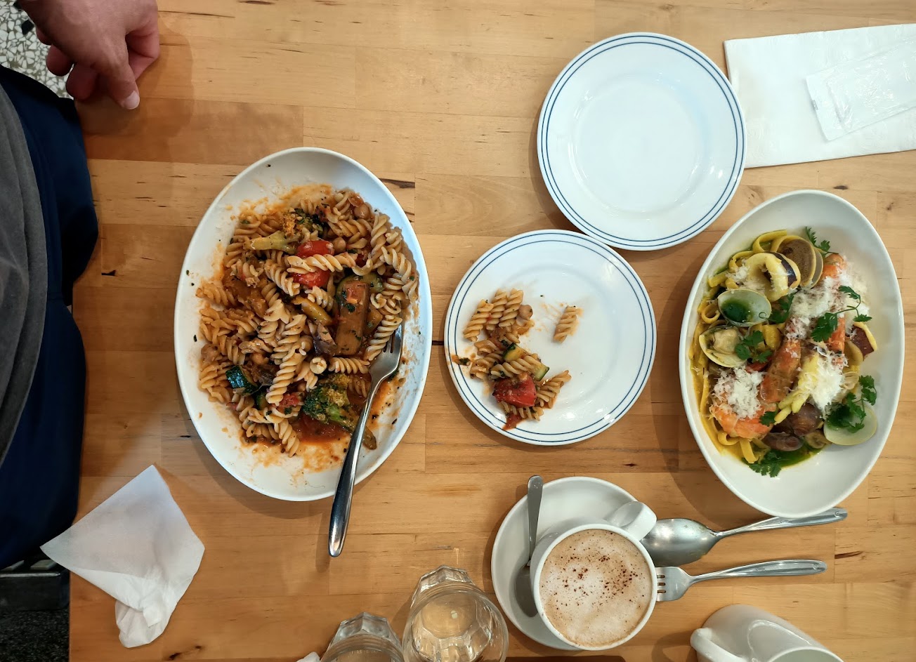 義大利麵好吃,麵條軟硬適中,食材新鮮。 例湯羅宋湯好喝,麵包沾油醋醬也好吃。 甜點提拉米蘇很好吃 服務也周到,推薦一試