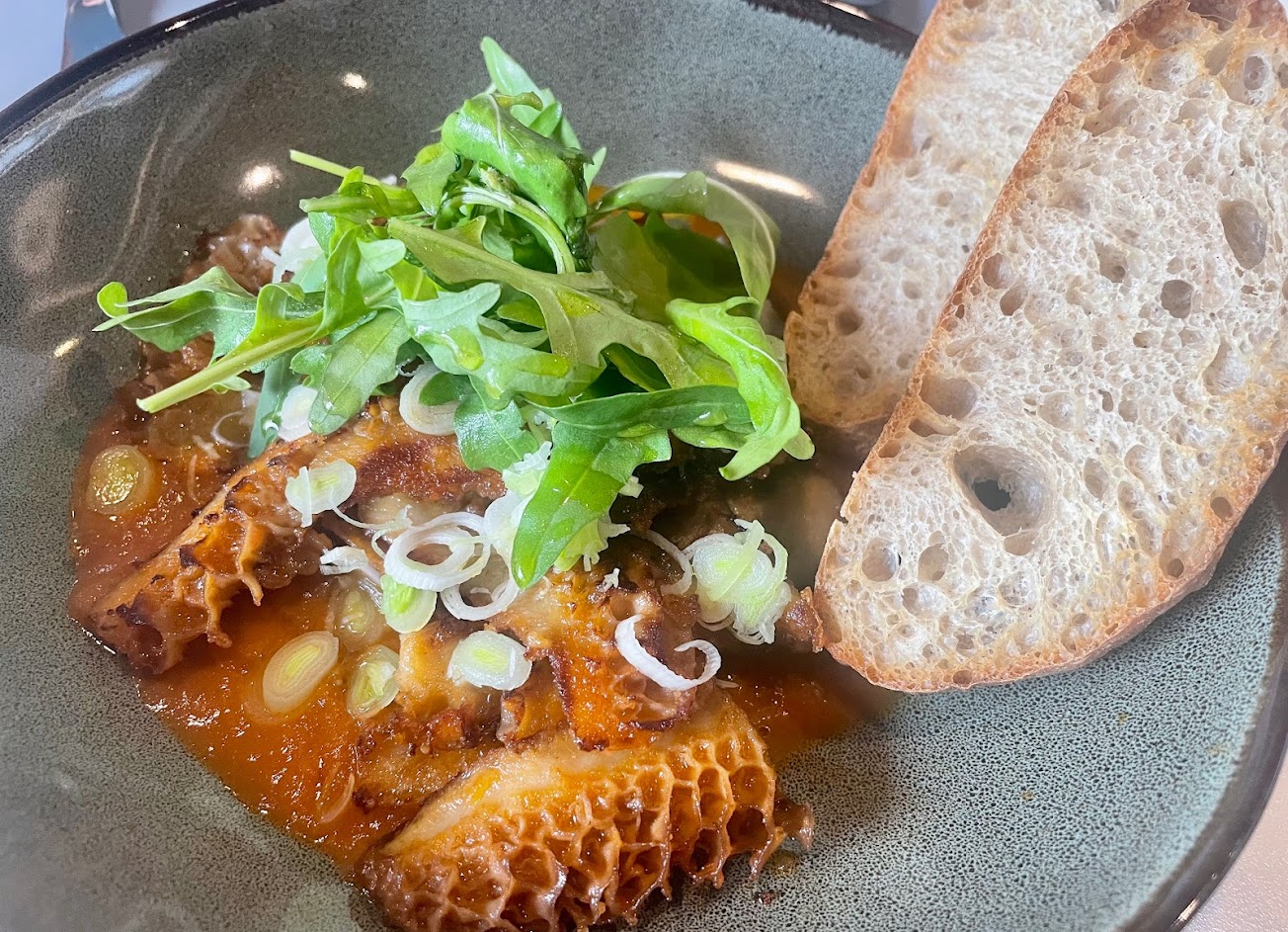 *煙花女鳥巢麵:麵很有彈性很有味道,跟其他地方口味不一樣 *肯瓊醬海鮮沙拉:海鮮很豐盛 *洋蔥湯:洋蔥很濃郁湯會回甘 *提拉米蘇:清爽卻不單調,會想一直吃 *舒芙蕾:濃郁的奶蛋香 服務真的很好,滿常更換盤子,也因應客人用餐速度適時調整上菜,老闆還特別介紹啤酒,餐廳整體色調走莫蘭迪藍,看得出餐盤是特別挑過做搭配,除了餐點好吃,環境跟服務都很舒服~