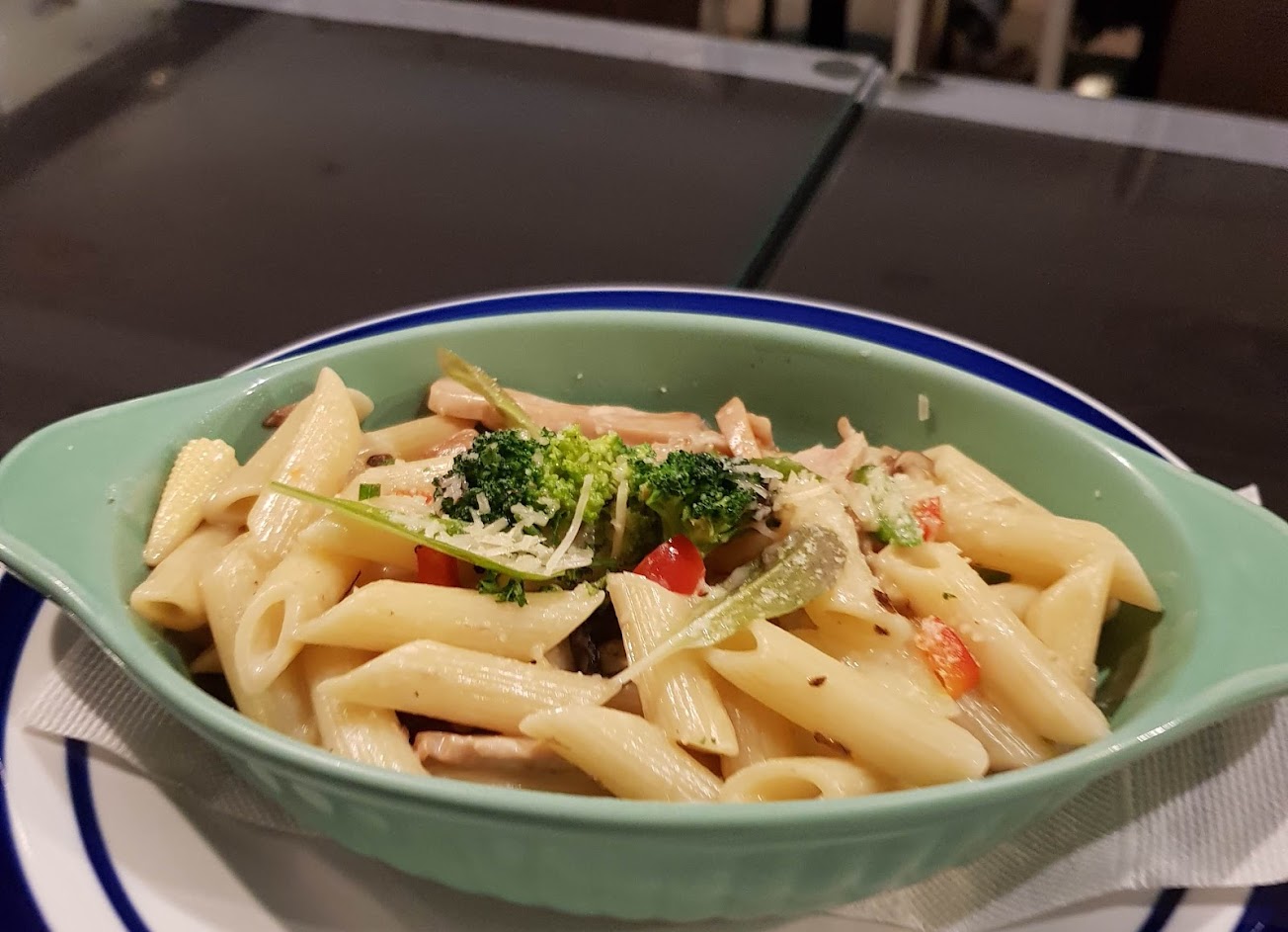 餐點份量很足,菜色很有店家的創新口味 很不一般的沙拉 真食材、麵裡吃到當季蔬菜、雞柳不是冷凍食品 捲麵的番茄醬汁是店家自己熬煮 搭配滿滿濃郁起司,會想一吃再吃