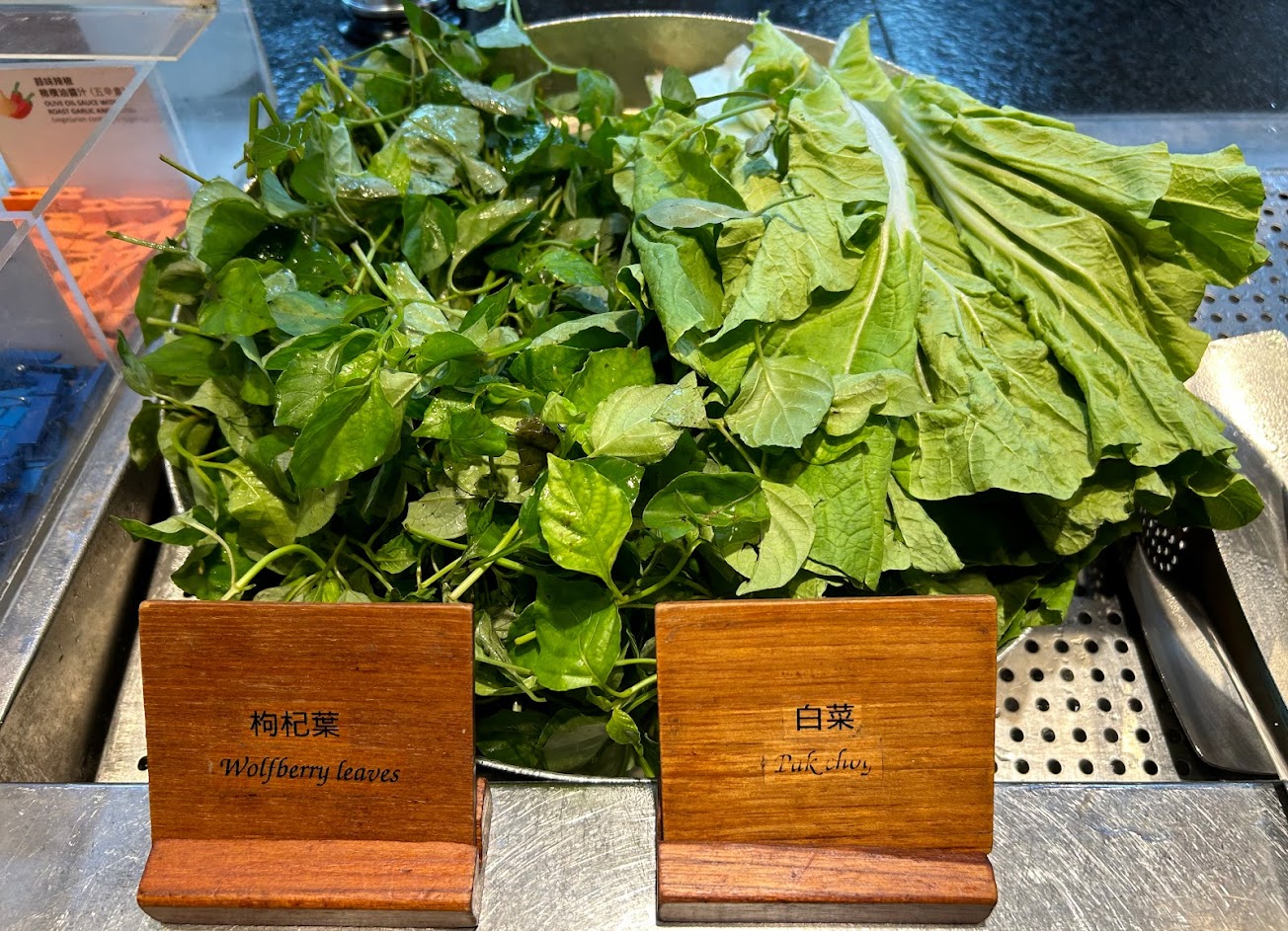 現燙青菜同樣可選擇各種蔬菜包含青江菜、白菜、地瓜葉、紅莧菜、枸杞葉,單價皆不高。另可自由搭配醬料。
