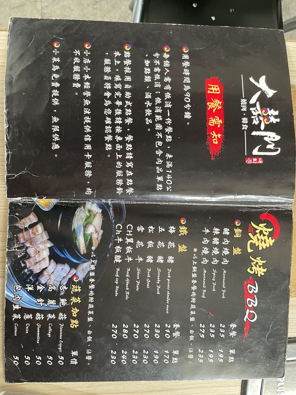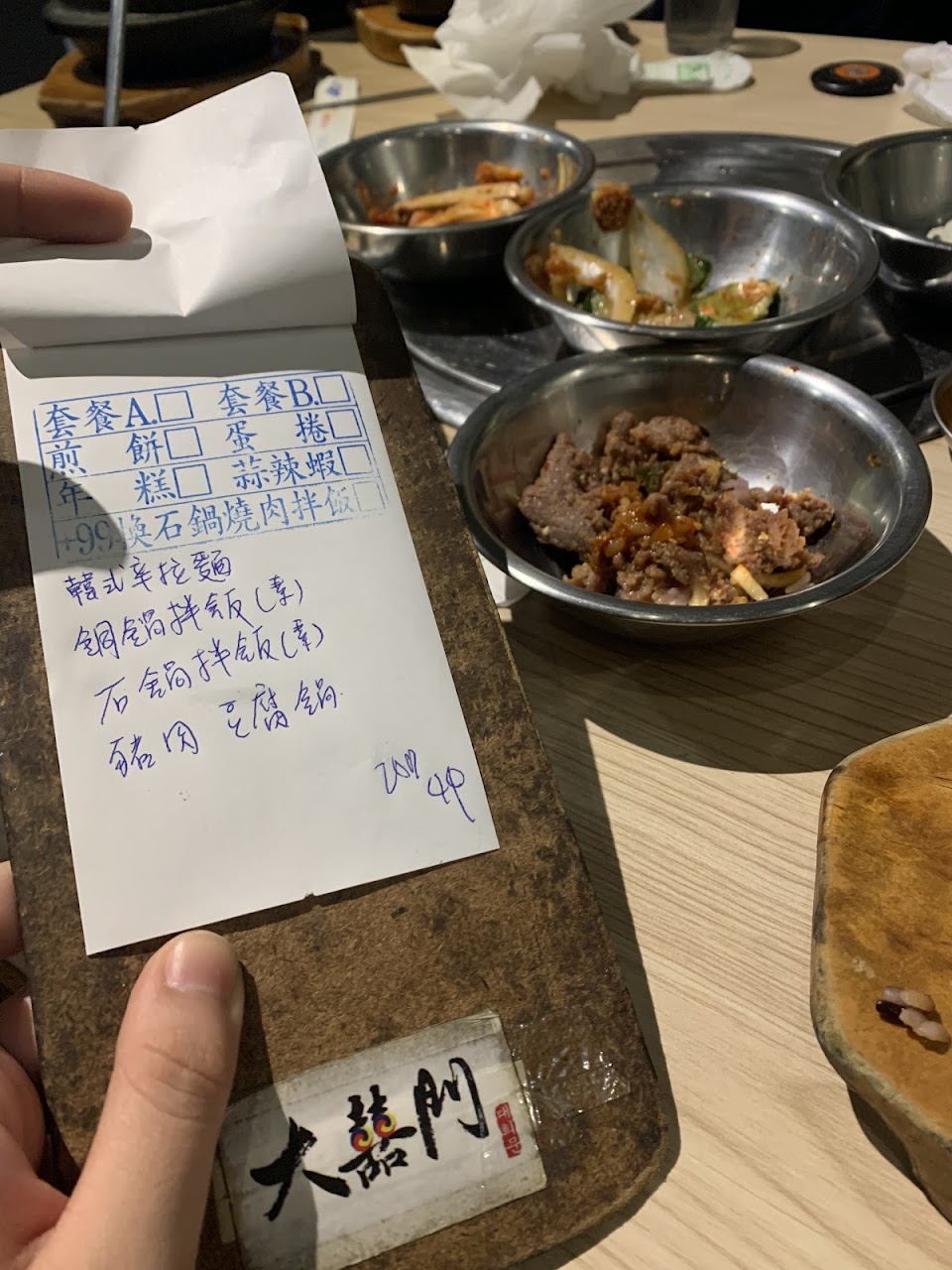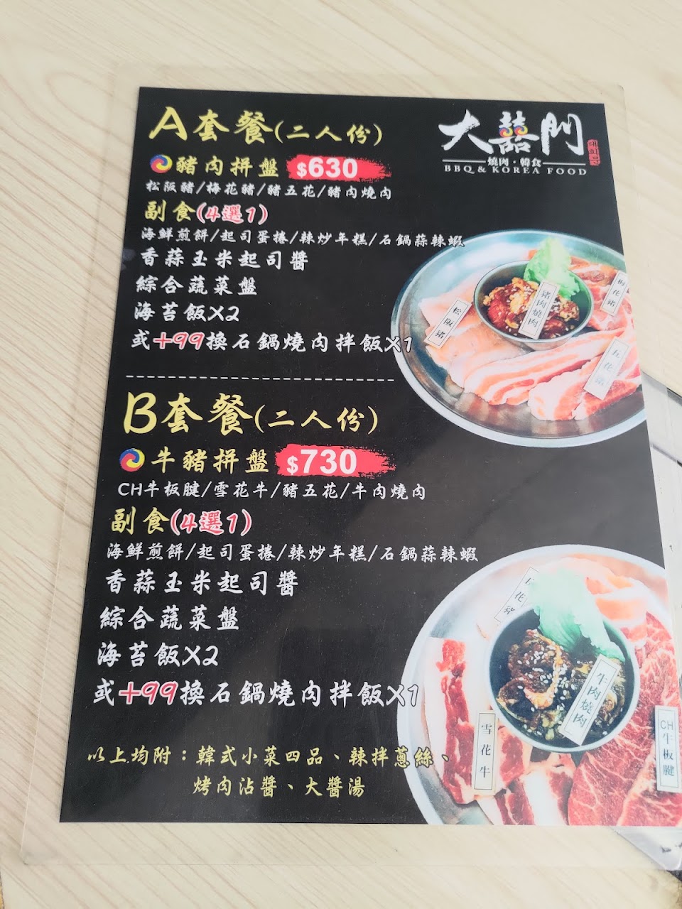 在大囍門韓食燒肉度過了一次美味的用餐體驗,我點了B套餐雙人份,豬牛雙拼,份量相當豐盛。還點了一道豆腐起司鍋,味道濃郁,令人驚艷。生菜包肉也算不錯,呈現出令人滿意的口感。???