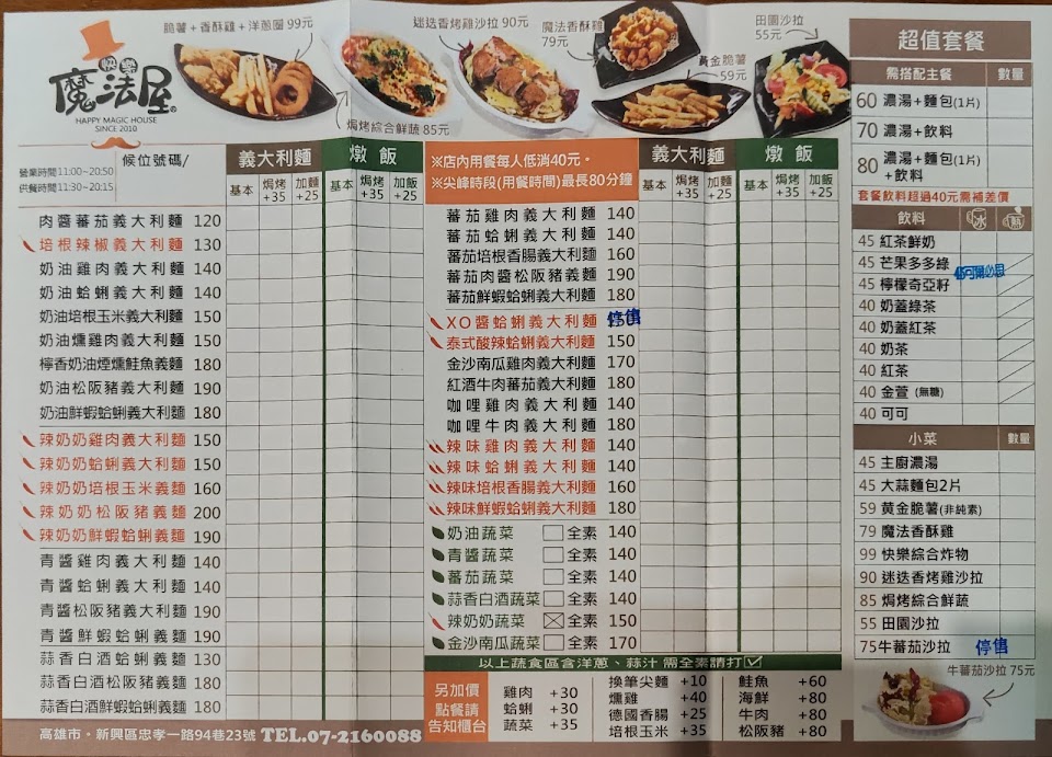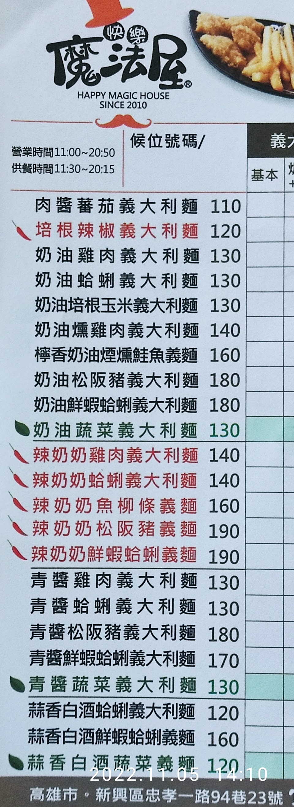 2024最新在地推薦餐廳的菜單_快樂魔法屋義大利麵的菜單、圖片