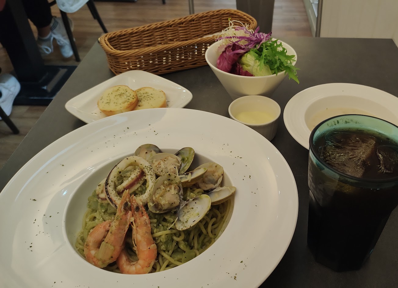 上次吃蛤蜊墨魚麵,蛤蜊很新鮮很好吃,麵包也很讚!這次來吃不同的口味,覺得筆尖麵的味道很重,不知道是不是醬比較淡壓不過去?可能下次選青醬類看看筆尖麵味道會不會不要那麼重,下次還會來吃的!