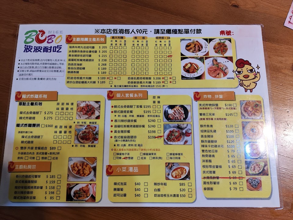 好吃,衛生乾淨 餐點類型 晚餐 平均每人消費金額 $600-800 餐點:5 服務:5 氣氛:5 建議的餐點 韓式去骨雞腿丁 大