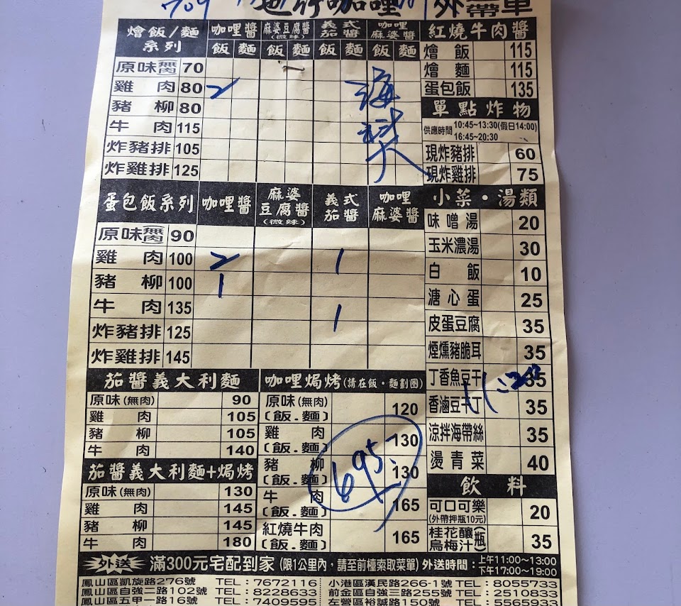 外帶取餐時最好核對餐點數量品項是否相符,現場發現少給一樣,回家發現點麻婆豆腐醬給咖哩醬。