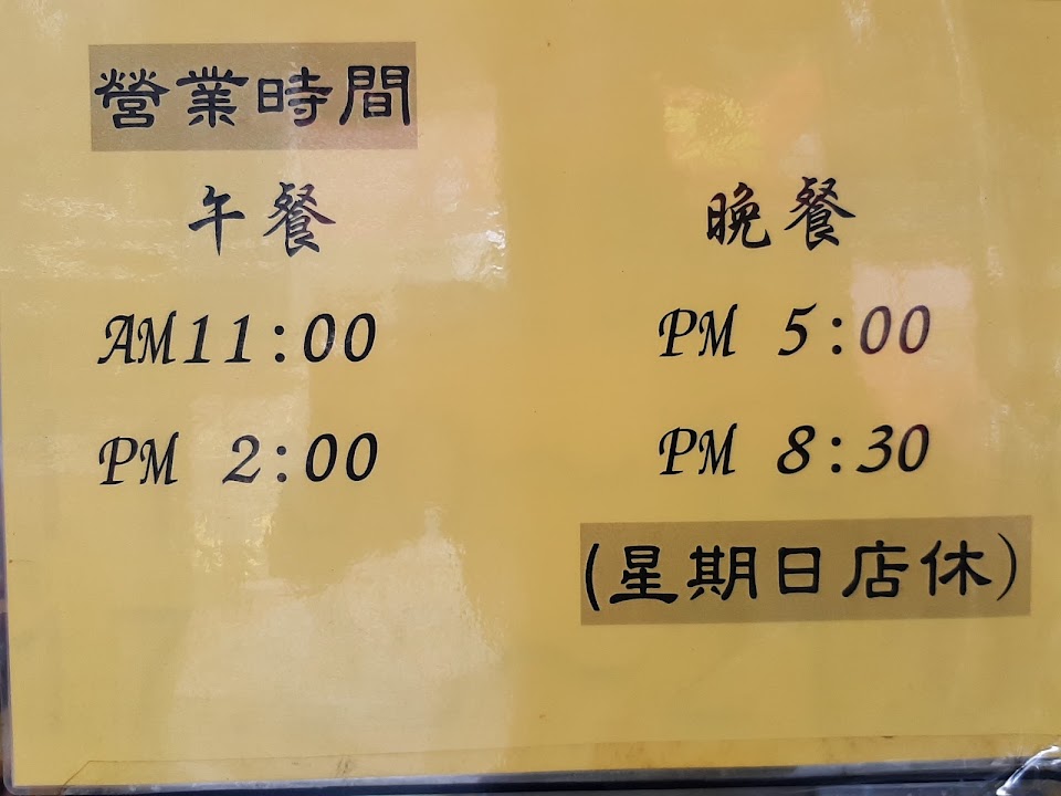 | 星期五 | 11:00–14:00 17:00–20:30 |