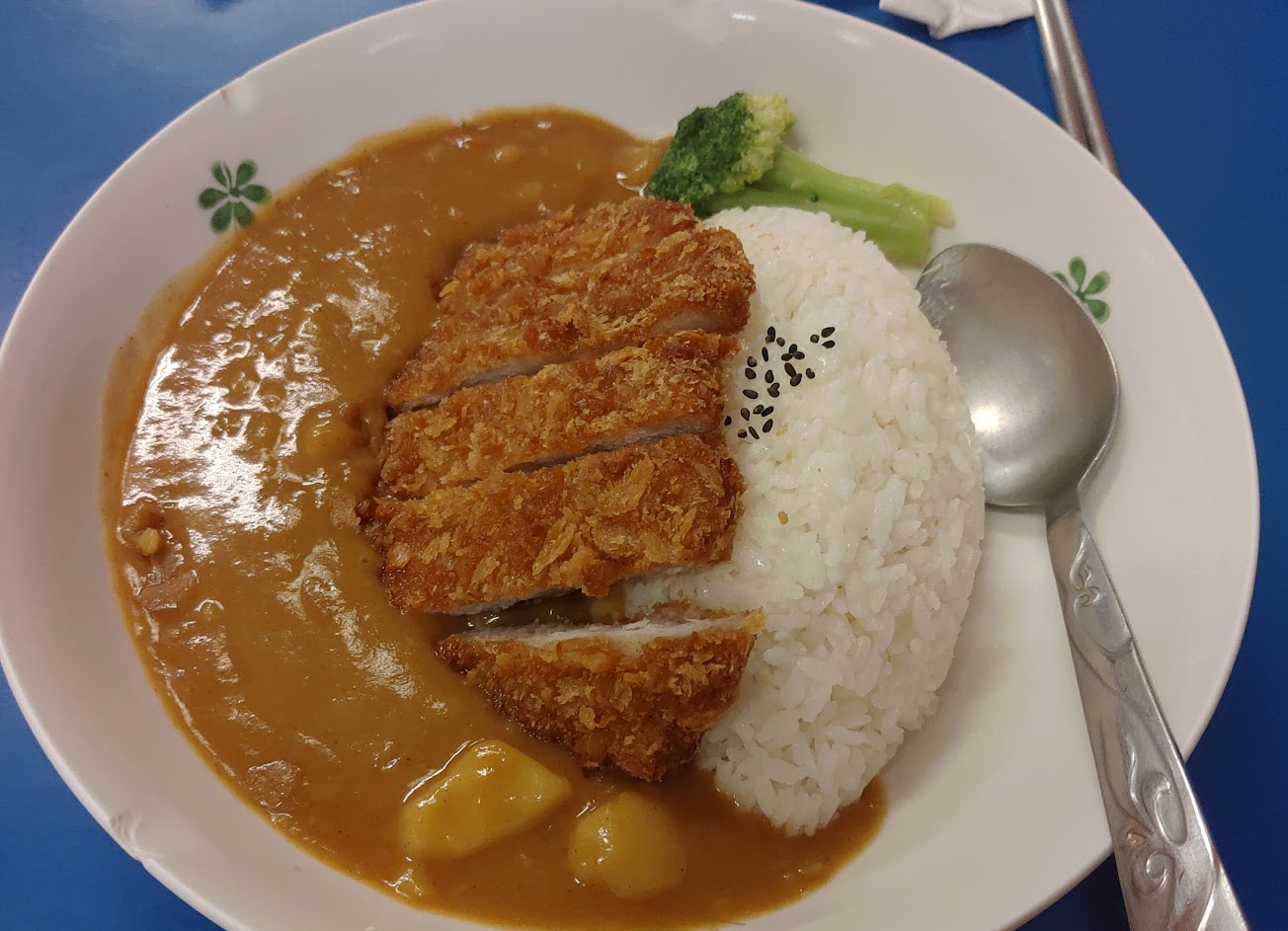 咖哩飯有: 黃金豬排咖哩飯、黃金雞柳咖哩飯、豬肉咖哩飯、牛肉咖哩飯、雞肉咖哩飯、菇菇咖哩飯。