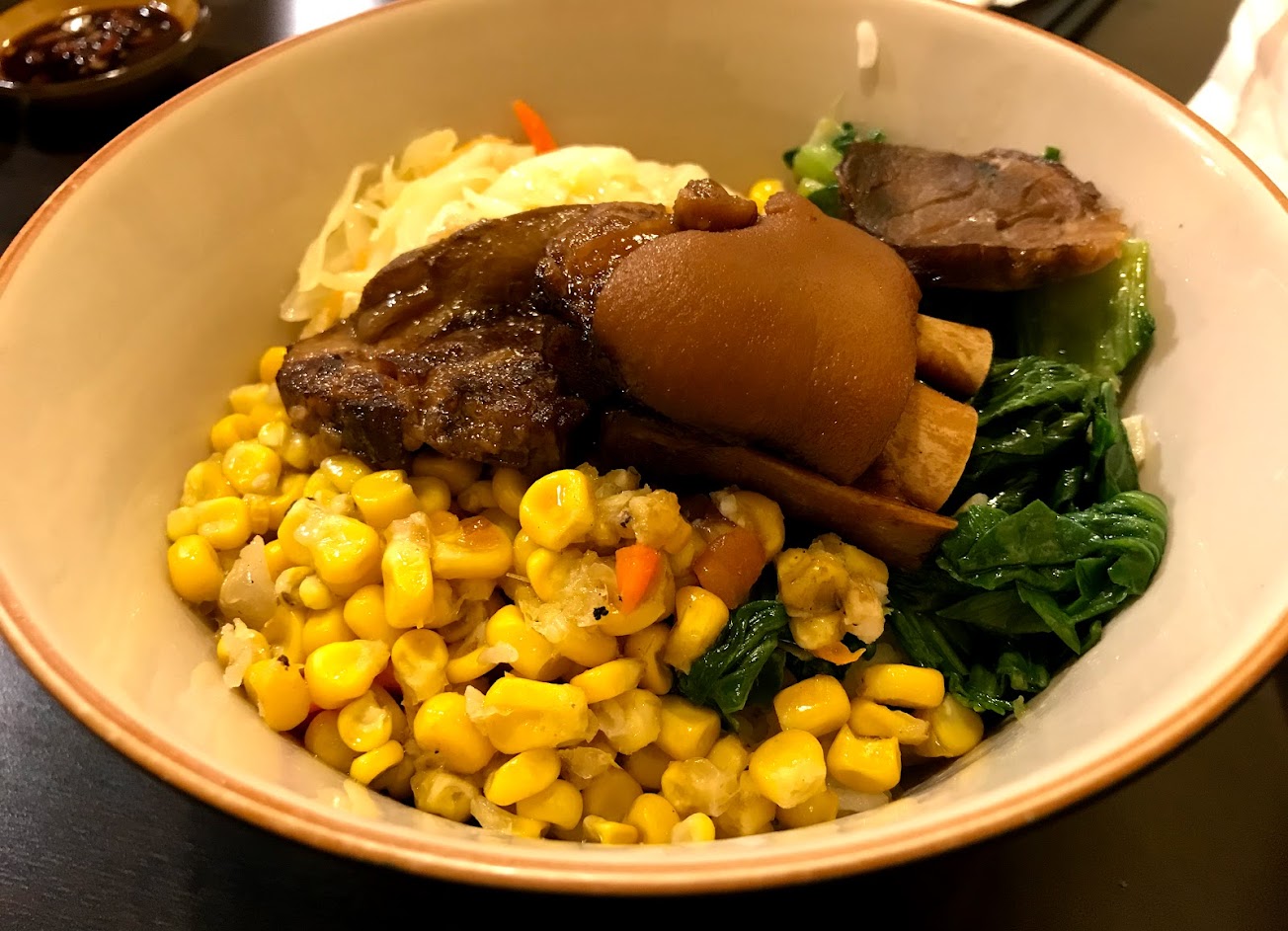 環境有特色,平價好吃。照片裡的肉燥麵、小菜只要65塊