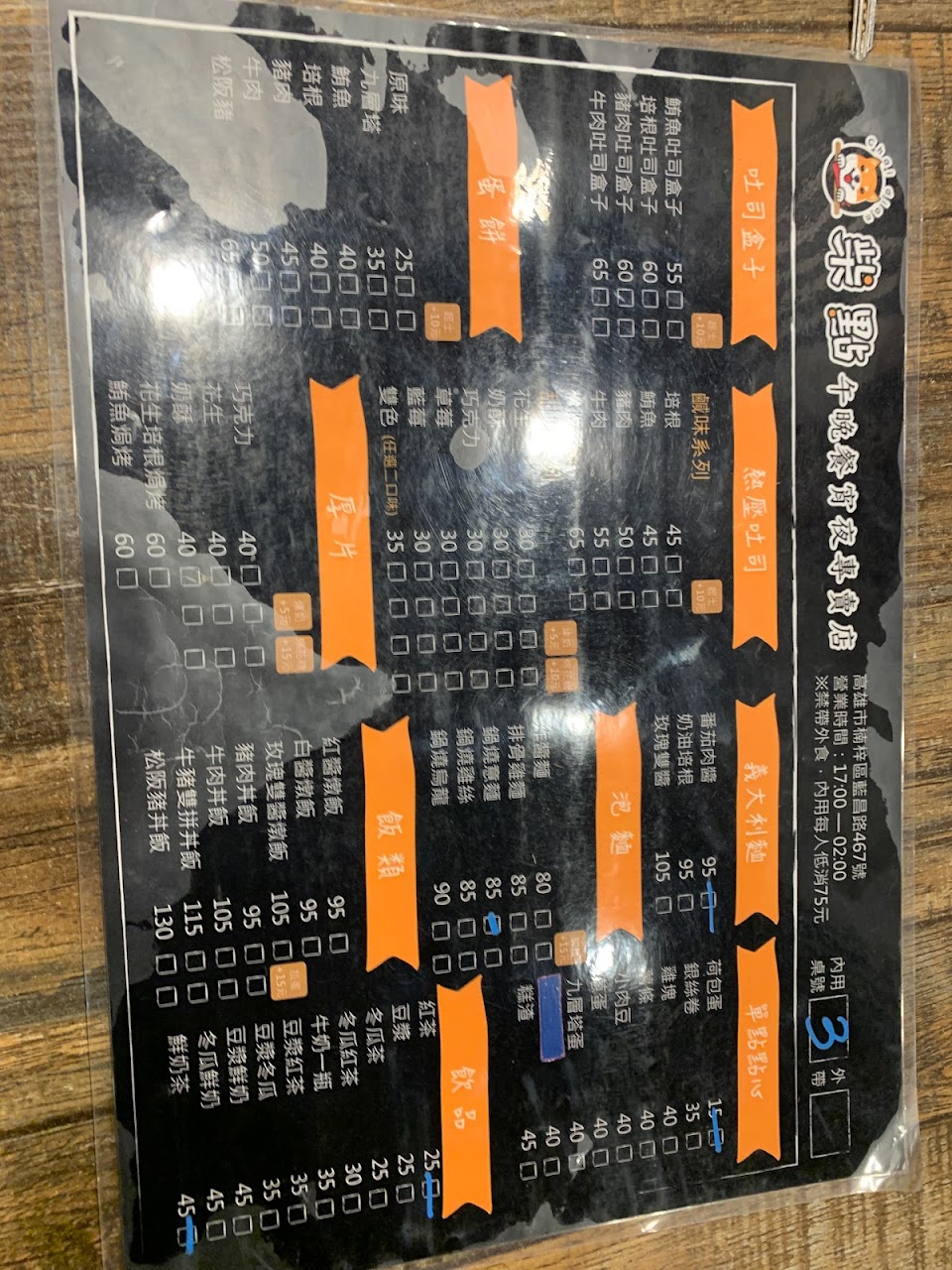 有蛋餅、鍋燒、義大利麵、燉飯、飲料,吐司系列和炸物系列。