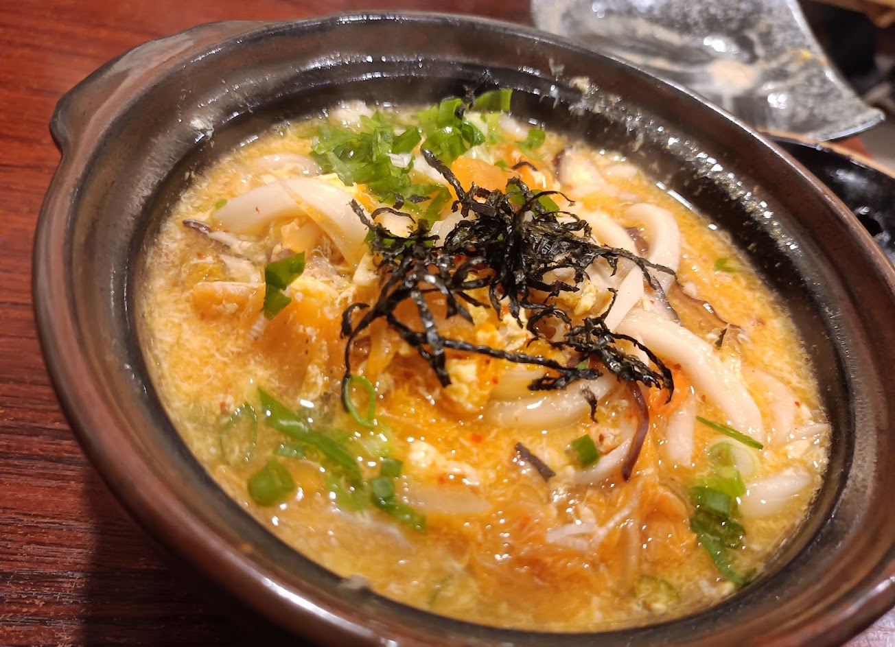 這次點的是明太子奶油鮭魚烏龍麵 鮭魚的肉很軟嫩非常好入口 烏龍麵的麵體也非常棒 非常Q彈好吃 再加上明太子的點綴 真的是很好的烏龍麵料理