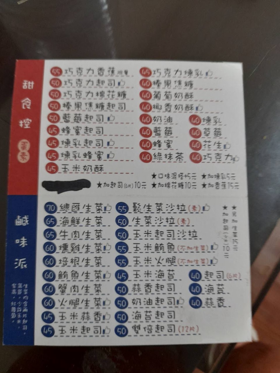 叫外送玉米鮪魚起司,還真的只有這三樣,第一次吃到鹹口味沒有生菜的,價錢和一般的ㄧ樣,但料偏少