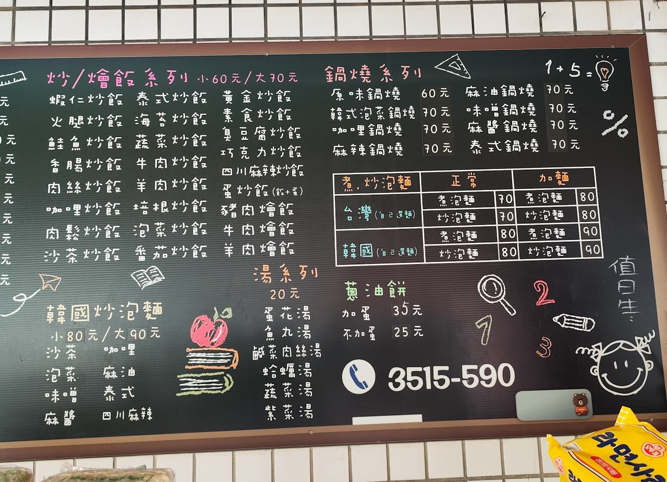 以炒泡麵為主題的台式飯麵餐館,內用環境普通,座位是小學課桌椅,菜單品項多,整體接近學餐口味,價位便宜。 服務 內用 餐點類型 晚餐 平均每人消費金額 $1-200