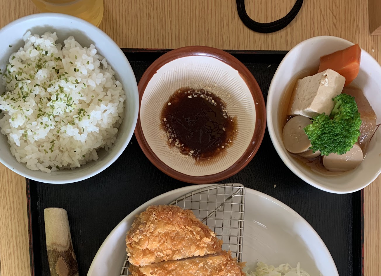 我覺得老闆的食材處理得很認真,但我認為是比較偏向台式的日本料理,因為他炸蝦就是用一整隻蝦下去炸,說真的很好吃、很嫩很Q,然後豬排非常的有嚼勁、非常的厚實是好吃的豬排。