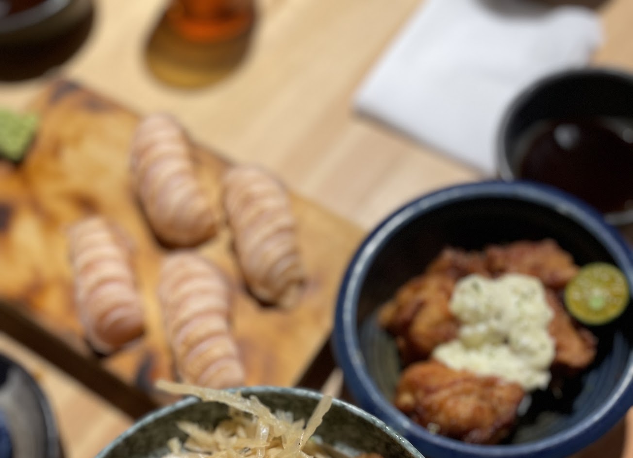 剛好在下楠梓交流道在附近休息一下,就查看到評價很高的一家店,用餐的時間約為下午2:30左右,還是可以看到店內有不少用餐的人潮。 整家店,不論是從外觀、菜單、店內裝潢到氛圍,說真的都很喜歡很像是來到熱鬧的日本用餐一樣,但是在餐點上覺得有些微的可惜。 主要是因為上餐的速度實在是太慢了,我從一開始上餐的雞翅到最後出餐的味噌湯,在這中間大約30分鐘,每一道菜之間的等候時間也都有點時間,這真的需要改善。 鮭魚丼和炙燒壽司的鮭魚都給過,也都是挺新鮮的,而且厚度也是很夠,在炙燒的處理上也很厲害,他不是只有表面上的炙燒,而且到內也吃得到炙燒到口感!所以炙燒系列給過。 但是不給過的是丼飯的白飯⋯是用冷掉又有一點煮太爛的飯,跟壽司的飯不一樣,不是很好吃。 另外,還蠻喜歡沙拉的部分,雖然是套餐給的沙拉,但是卻不馬虎,口味很多層次,下次會願意點一到沙拉來吃看看。 服務 內用 餐點類型 午餐 平均每人消費金額 $400-600 餐點:4 服務:3 氣氛:5