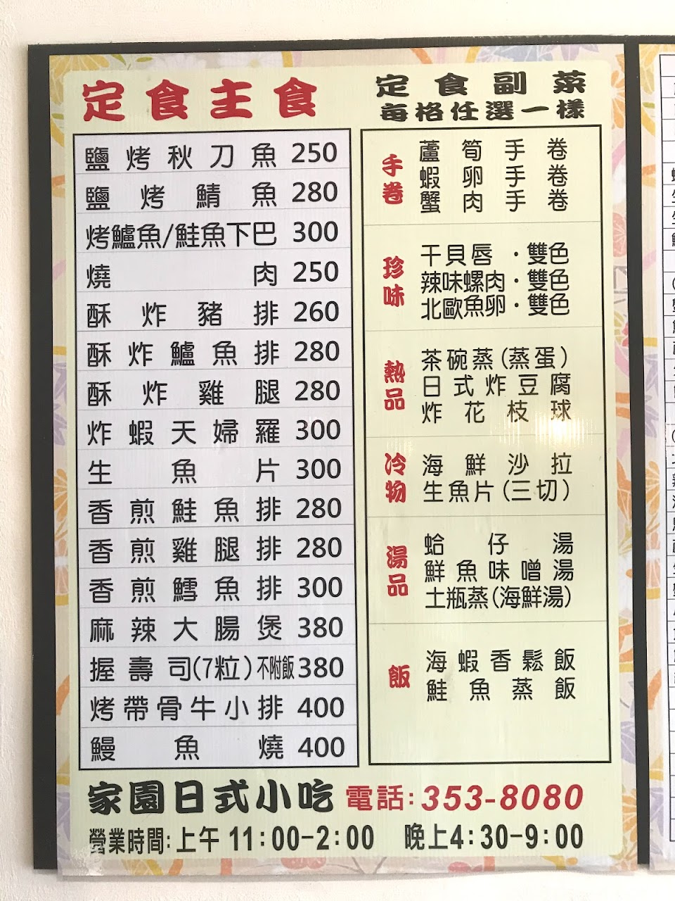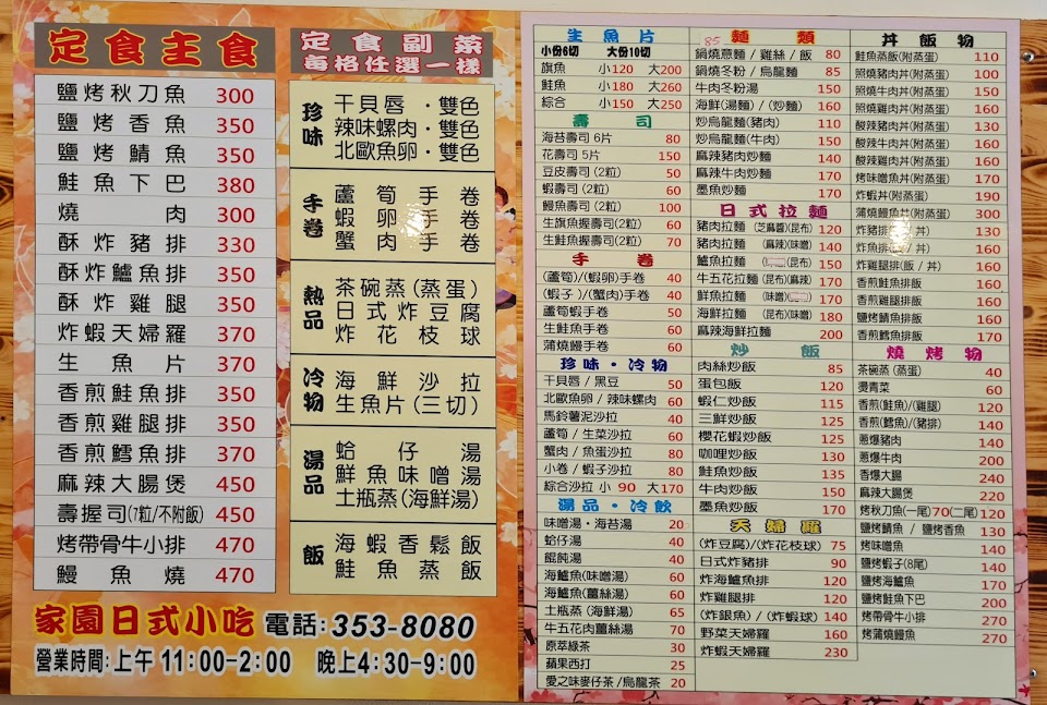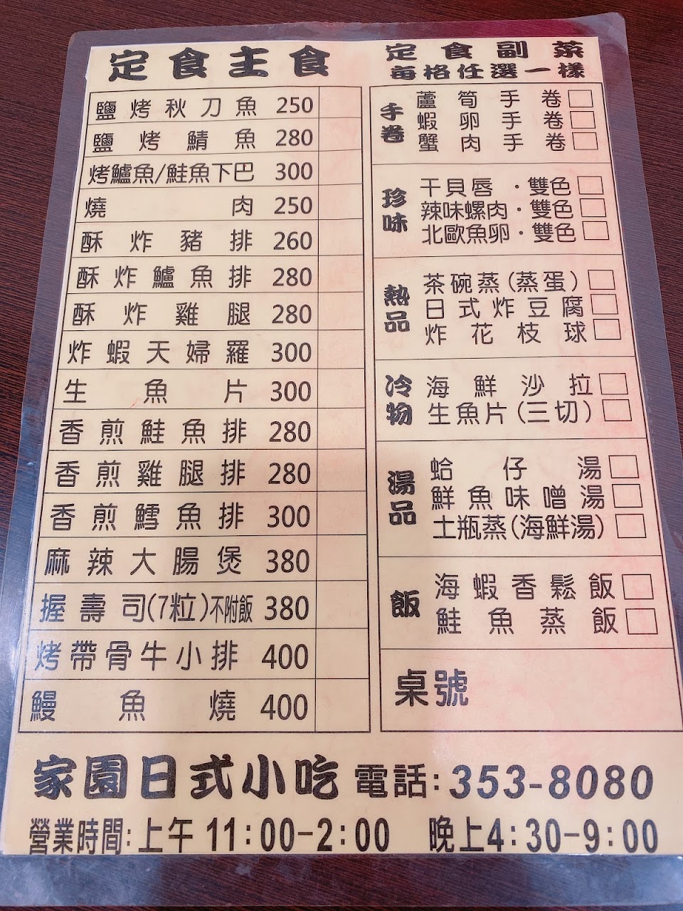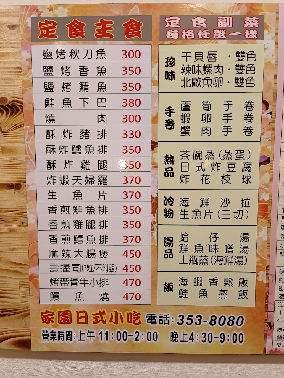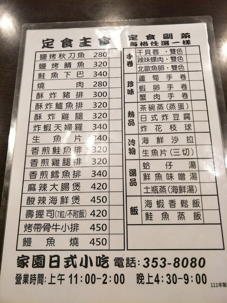 2024最新在地推薦餐廳的菜單_家園日式小吃的菜單、圖片