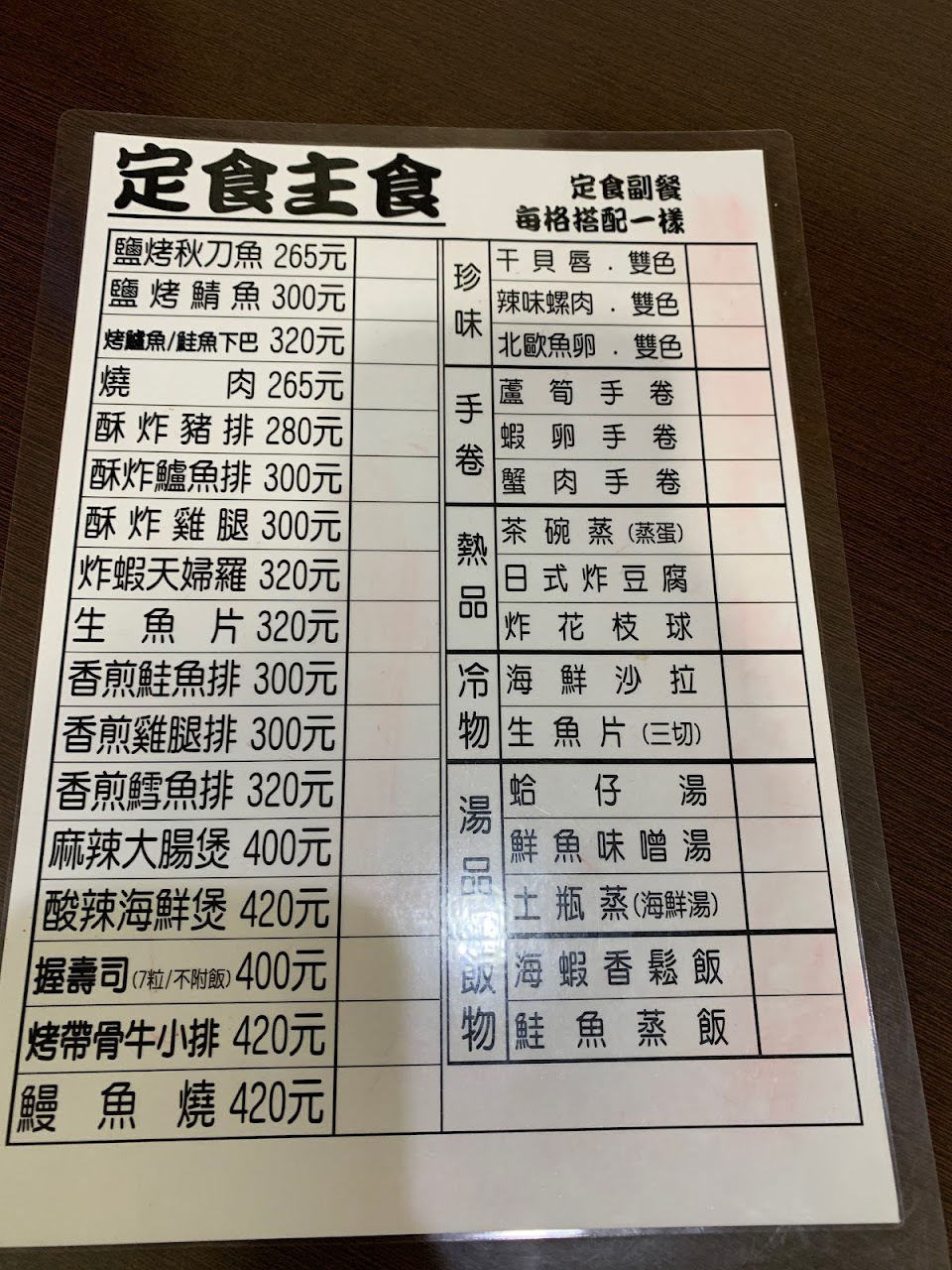 菜色屬台式日本料理,當天點炸蝦飯及烤味噌魚飯有附蒸蛋,餐點中規中舉好吃,價位兩樣加起來不到400元,CP值超高!!