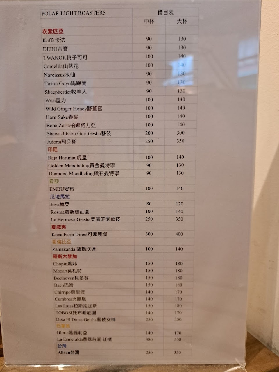 2024最新在地推薦餐廳的菜單_POLAR LIGHT Roasters 自家烘培咖啡的菜單、圖片