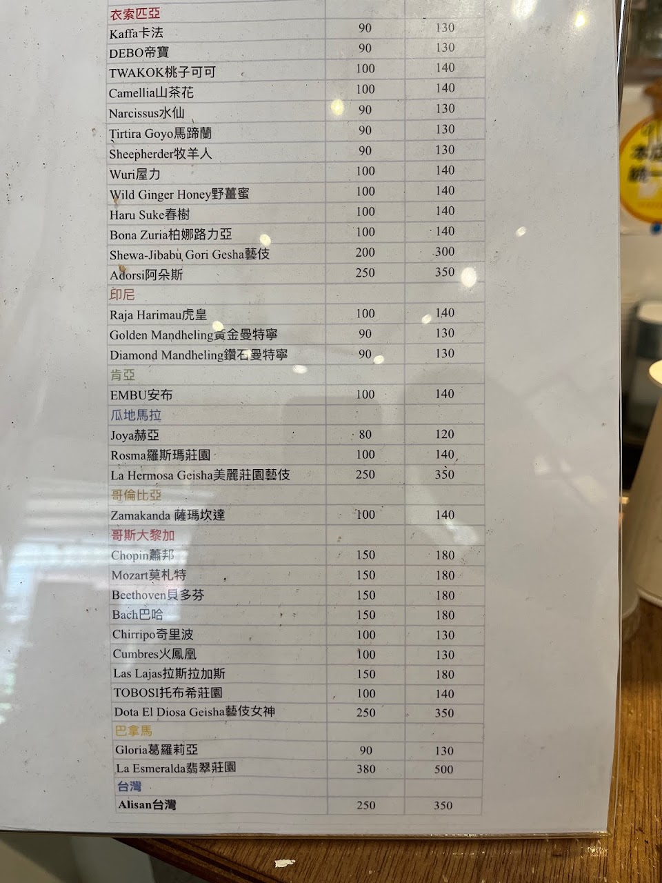 很多咖啡豆的選項,大部分為單品手沖,也有一些義式。