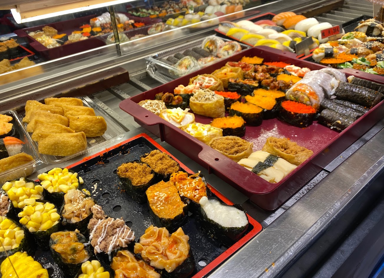 平價壽司外帶店,壽司選擇多,有販售生魚握壽司,口味有特色,有附贈味噌魚湯,整體價位一般。