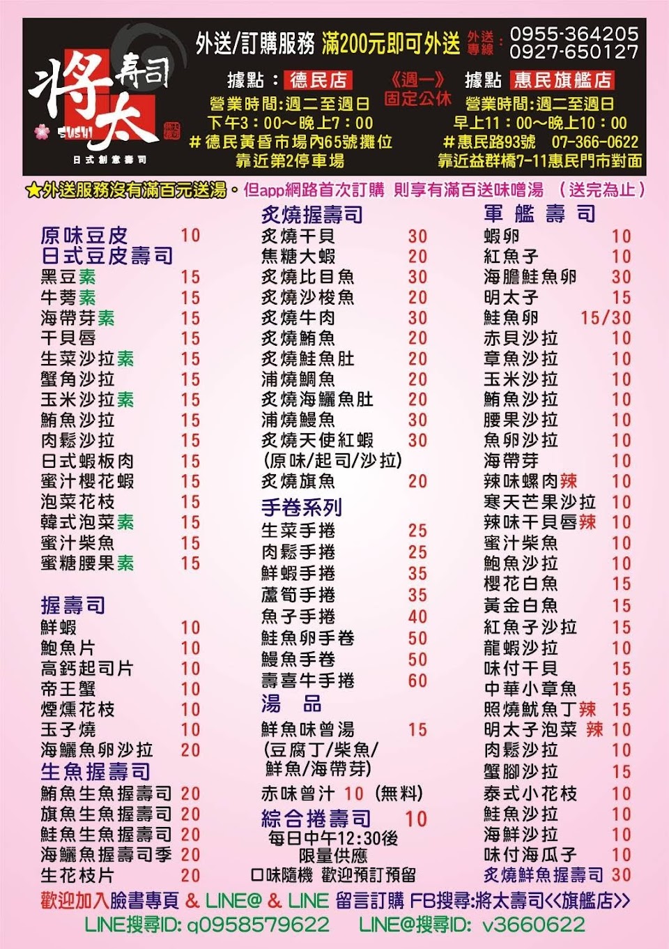2024最新在地推薦餐廳的菜單_將太壽司《惠民旗艦店》的菜單、圖片
