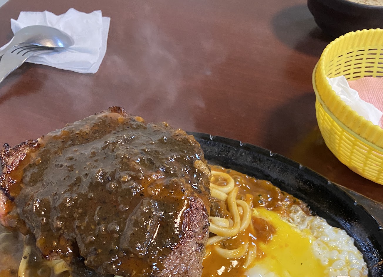厚片牛5分熟煎得剛剛好,醬料濃稠,自助吧的奶茶不太甜好喝,進門喊歡迎光臨、離開喊謝謝光臨很客氣有禮,會讓人想回訪。
