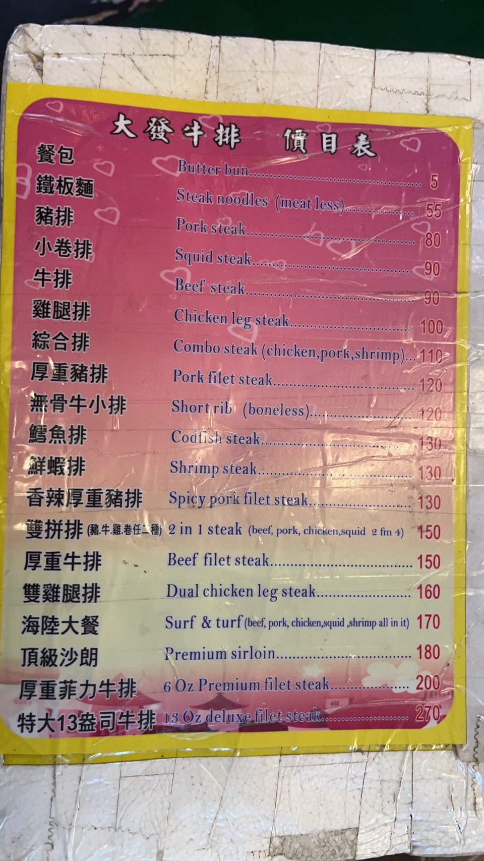 2024最新在地推薦餐廳的菜單_大發牛排的菜單、圖片