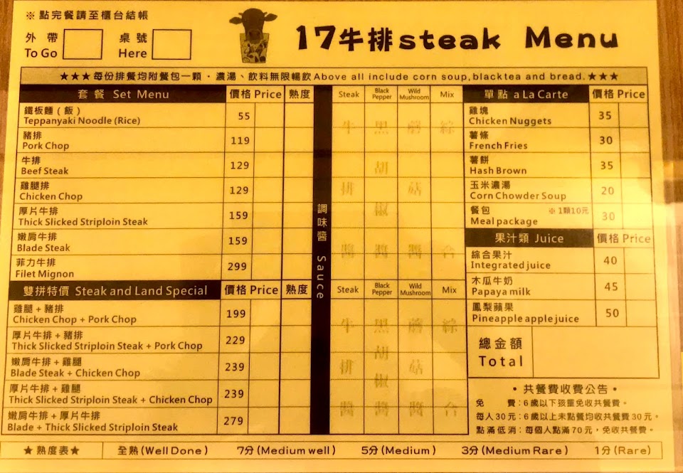 2024最新在地推薦餐廳的菜單_17牛排的菜單、圖片