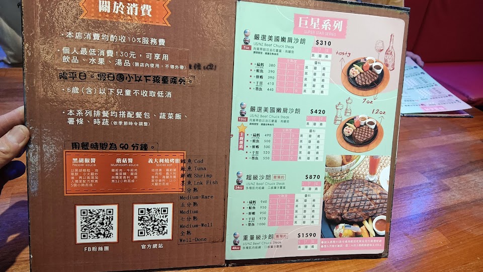 已經n訪,臨時想吃牛排就會來這,服務生很熱情第一次來會先介紹菜單並推薦排餐熟度?店內空間寬廣,還有薯條以及水果可以續,每次來都吃很飽~ …