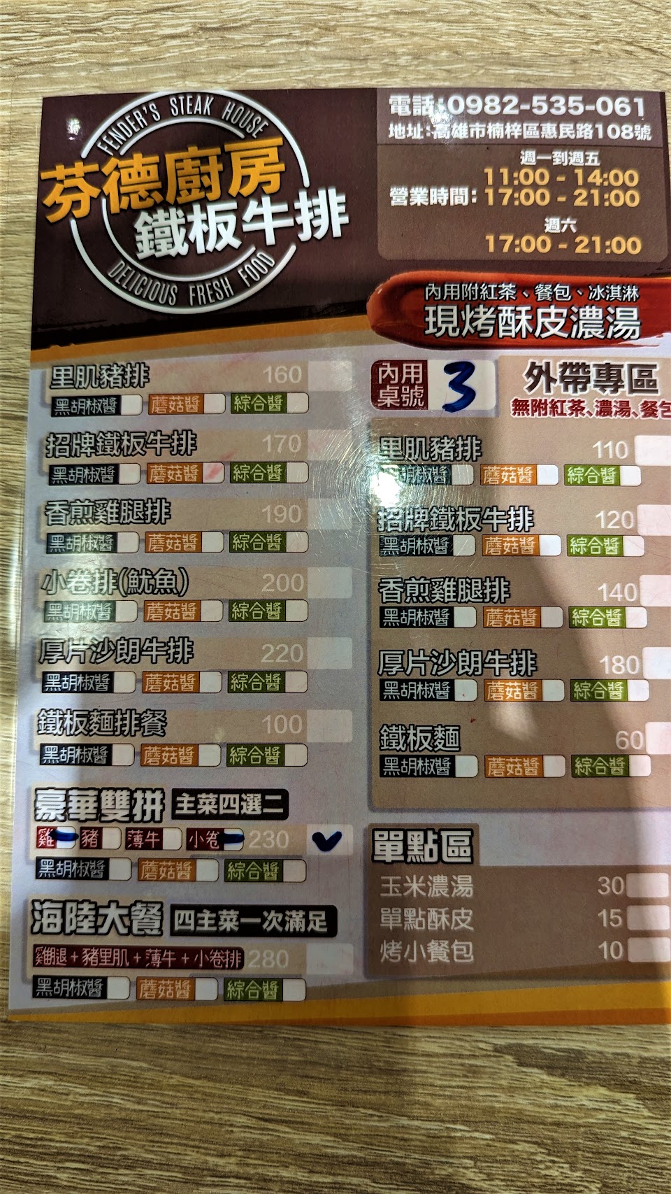 2024最新在地推薦餐廳的菜單_芬德廚房鐵板牛排的菜單、圖片