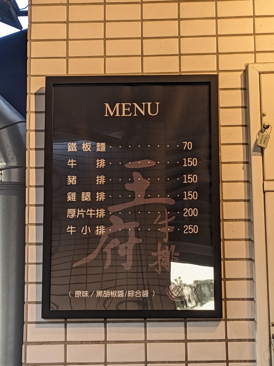 外帶~雙拼!! 雞排好吃很入未完全不柴,厚片牛也非常軟嫩完全不難咬 餐點:5 服務:5 氣氛:5